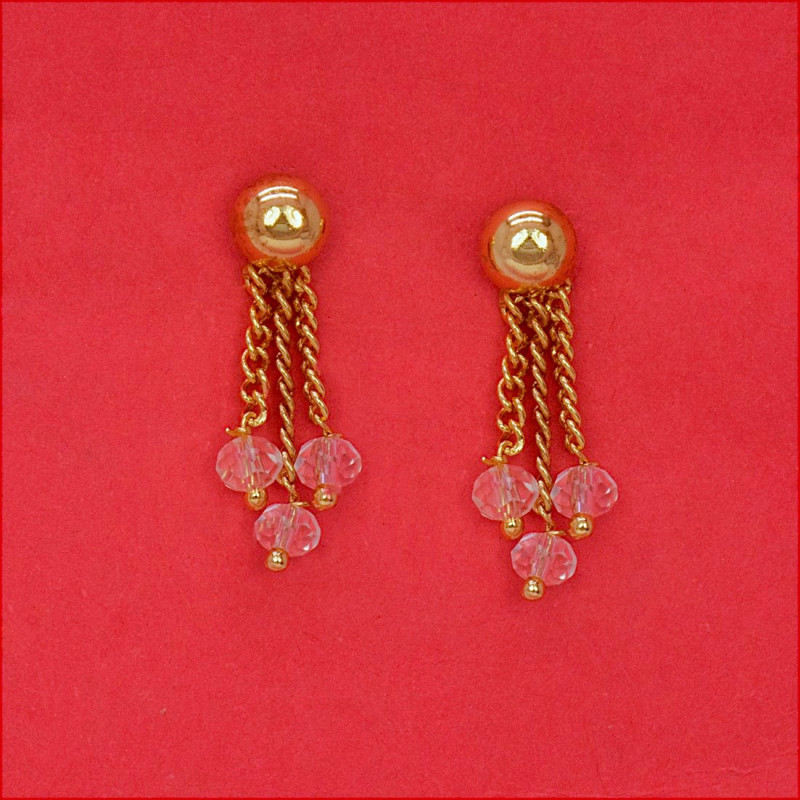 These cute white crystal chain drop earrings are designed to enhance your charm and beauty. They feature gold-plated box chain tassels with white crystal beads, and white stone stud/button studs that will complement any outfit. These hanging earrings make a simple and elegant gift for girls on special occasions.