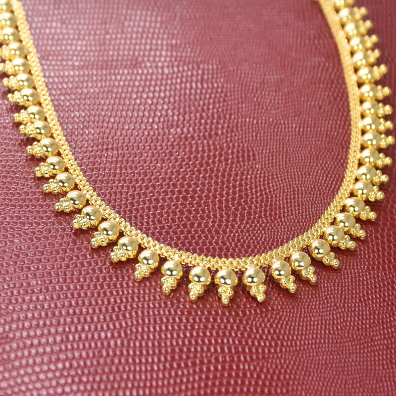 Simple Designer Golden Necklace is a Kerala traditional Gold Plated jewellery. This classic elegant Necklace with an adjustable link chain that is usually worn on Marriages and engagements with sarees and ethnic dress and to temple. It is apt for girls and women for casual occasions and special occasions.
