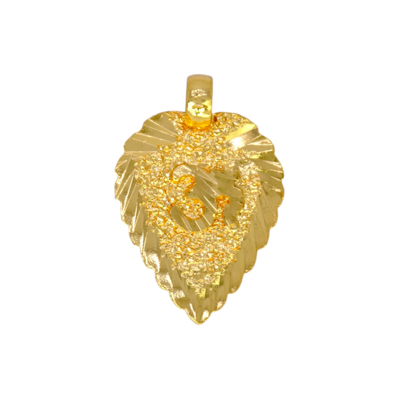 Trendy Gold Plated Traditional Om Thali Pendant is worn by Married women in India. More than just a piece of jewellery, this ornament is believed to be bestowed with divine powers. This "Om" Gold plated leaf motif design is known in Kerala as "Ilathali" which means Leaf Thali. It is ideal as a daily wear piece.