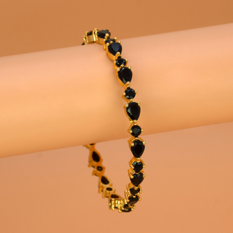Sparkling Gold Plated Oval and Round Stone Bangle studded with sparkling synthetic stones, available in Black, White, and Blue Sapphire variants. Perfect for parties, weddings, or daily wear.